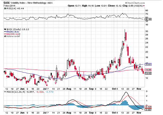 In terms of overall sentiment of the global market, events such as these will need to be monitored. With an equity market at all time highs with no outward signs of nerves , all seems well. Here is the vix at surprisingly low and steady levels as the following chart shows;