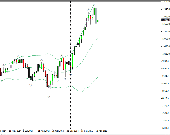 Elsewhere in Japan the Nikkei pushed ahead, but a different story in the Eurozone. Here s the weekly dax;