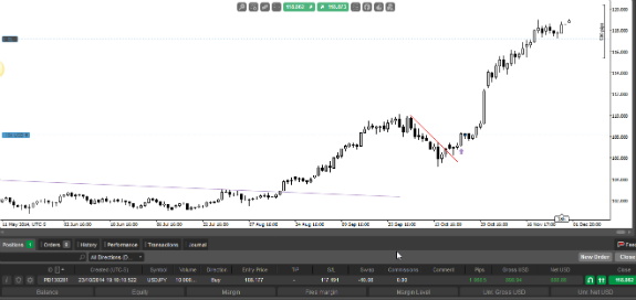USD/JPY long, entered on 10/22, still in trade, moved stop to protect 900 pips