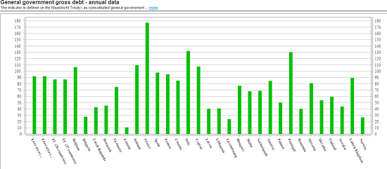 Here is a current European list of countries with a debt to GDP ratios over 100% and the inherent warning that Greece will not be the last of the EZ problems;