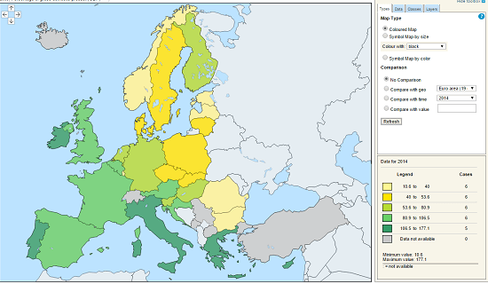 And this is how the EU stacks up in terms of debt to GDP;