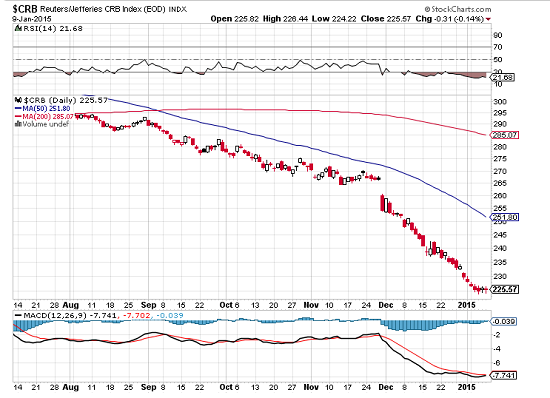 In China, deflation now threatens with commodity prices still falling, metals especially copper seeing new lows after it last month  easily removed the major low of March 2014.  PMI for December was 49.6.  and below that important 50 level. PPI , producer prices which will trickle down to consumer prices, was down more than 3% on the year. China’s export prices are falling and deflationary pressure increasing.