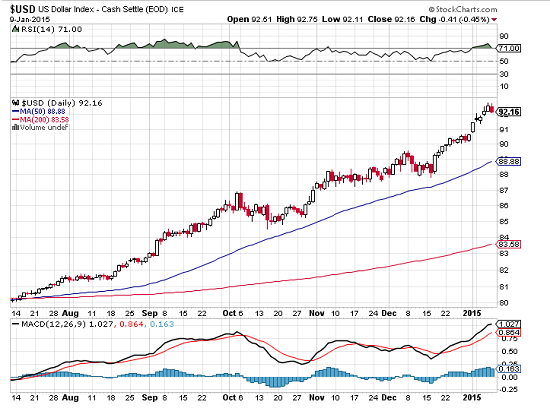 Here is the Daily chart of the USD index; courtesy of stockcharts.com