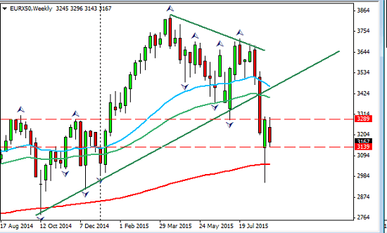 As for equities another risk averse week here illustrated in the Eurostoxx 50 using a weekly perspective;