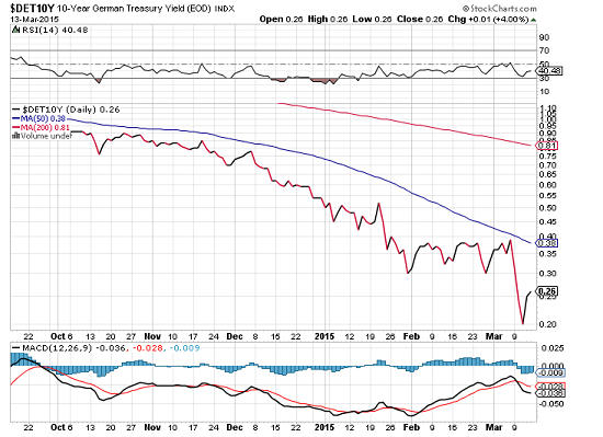Meanwhile in Germany the comparative 10 yr bond fell to o.2 and the nearer term bonds falling further into negative territory. This was to be expected as the ECB started their QE purchases of German and Italian debt;