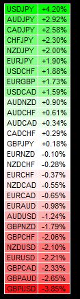 The top bull and bear pairs using the strength indicator on the 4 hour chart this week will be……..